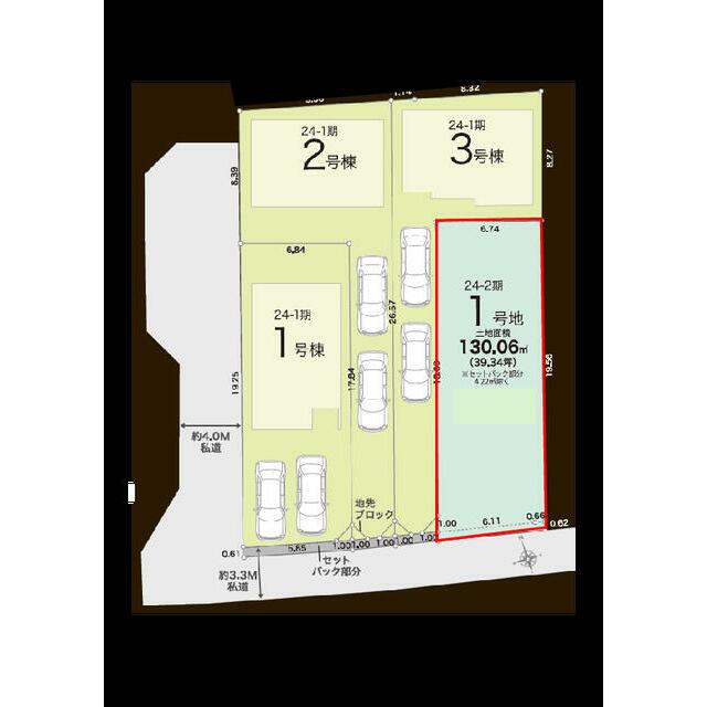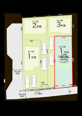 | 土地面積 | 実測 130.06㎡ | 坪数 | 39.34坪 | 坪単価 | 111.33万円 |